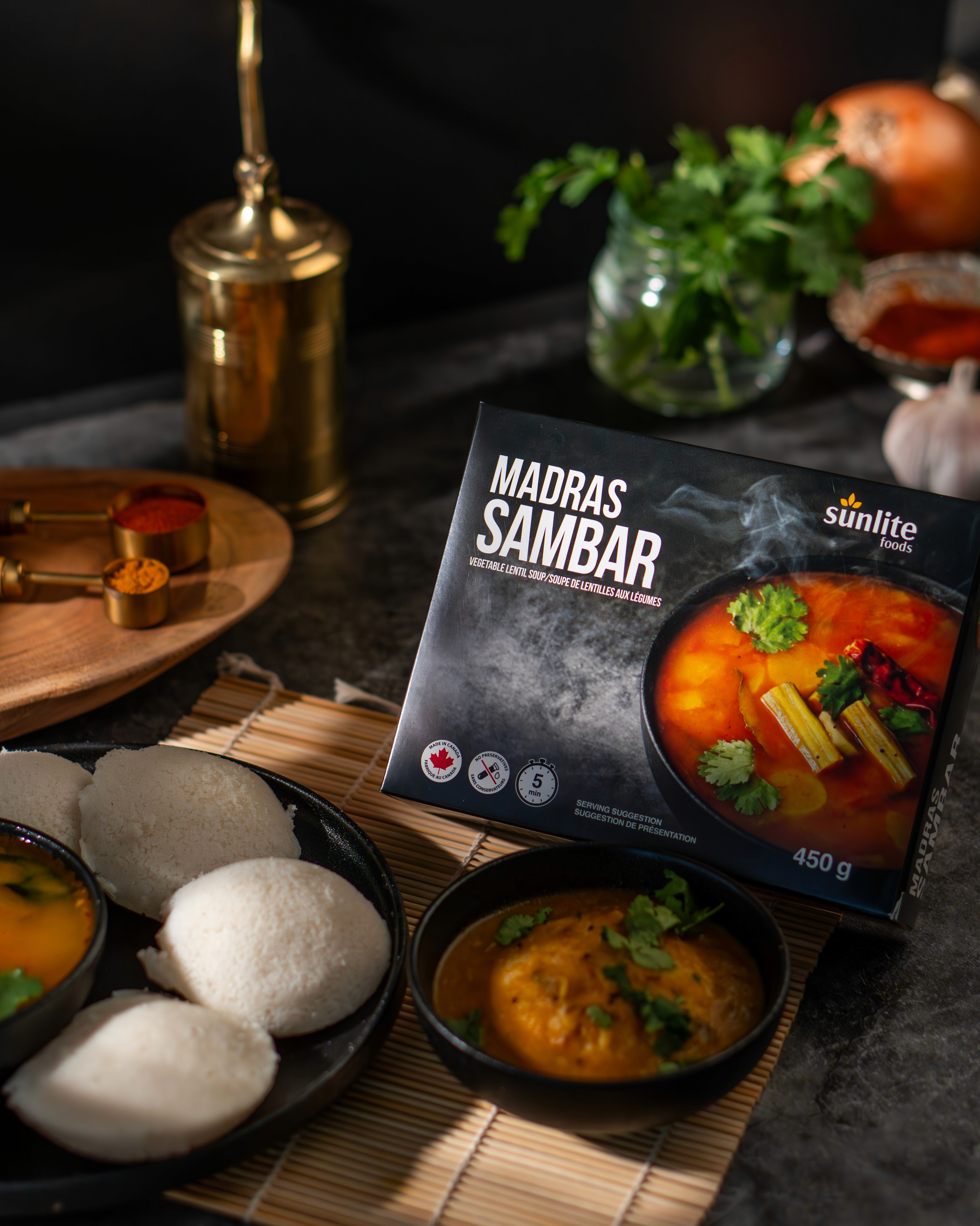 A tangy, wholesome South Indian lentil stew made with toor dal, veggies, and a classic tamarind-spice blend.Perfect as a side or a soul-warming main dish—just heat and serve.